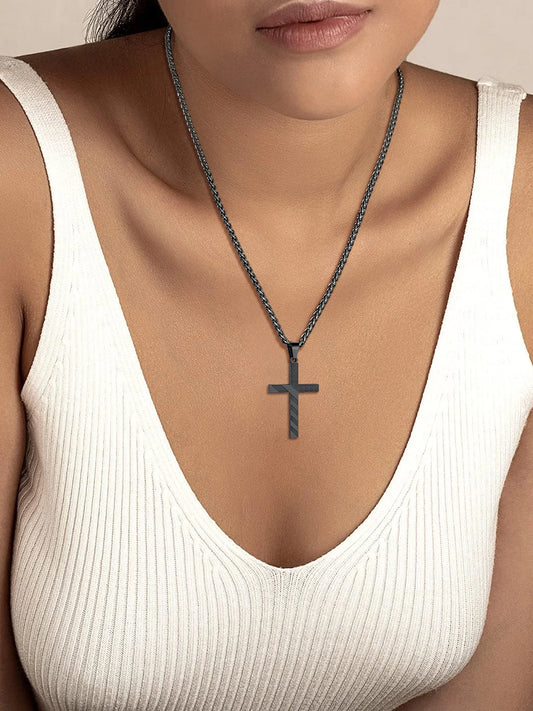 Collar Cruz USA Negro para-Hombre y Mujer – Ideal Primera Comunión o Regalo unisex