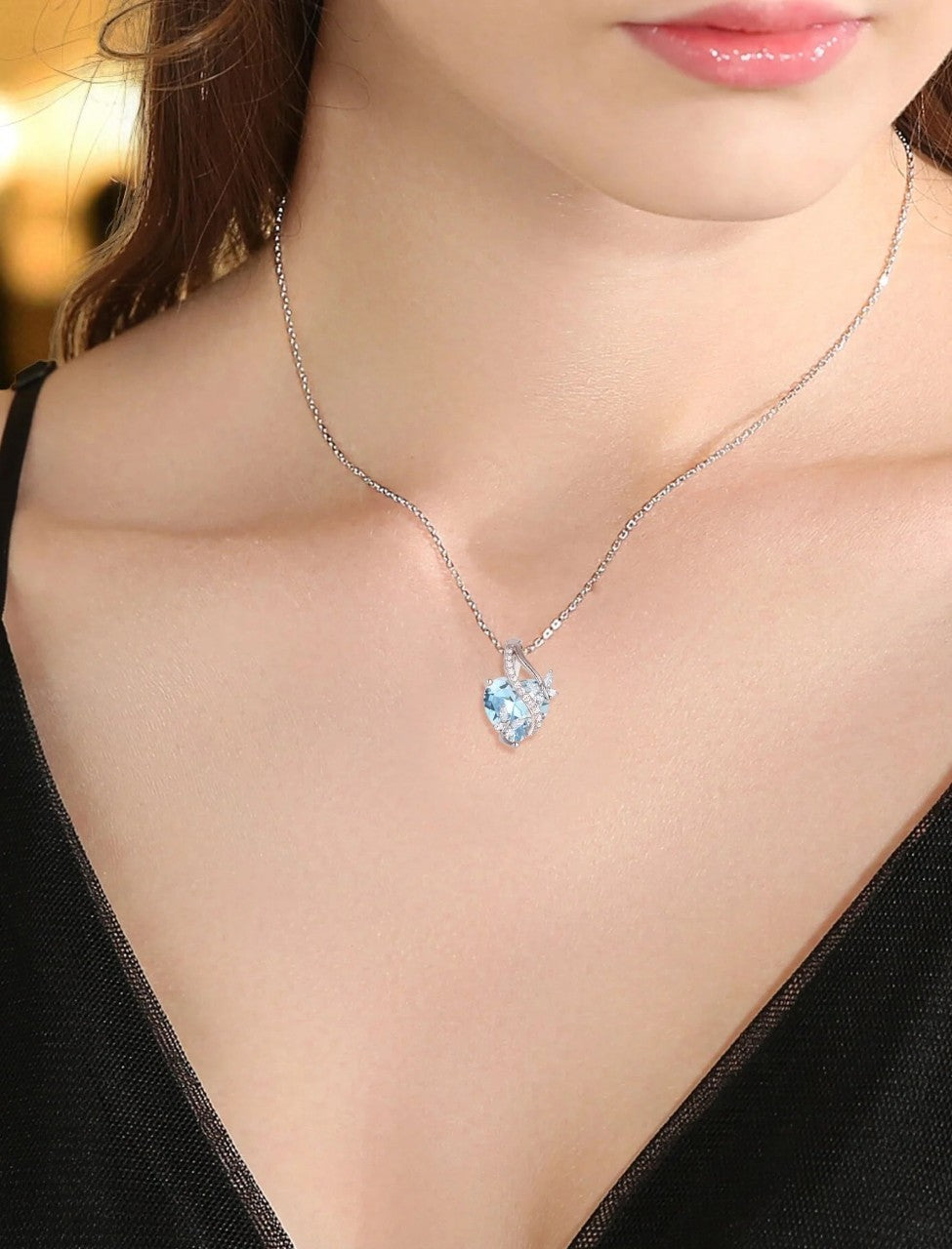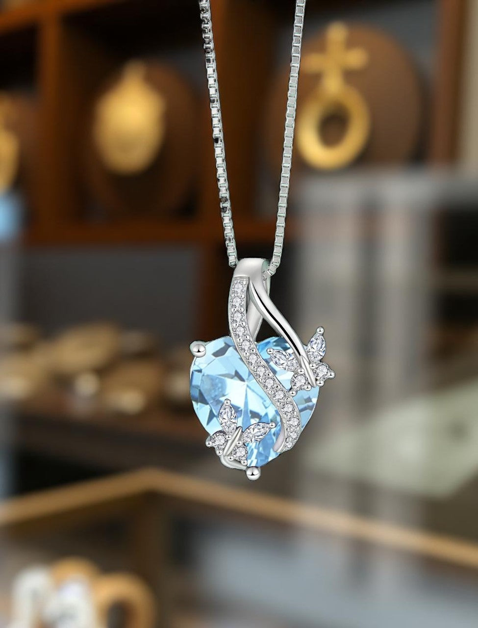 - Incluye una cadena tipo box ajustable (45 cm + 3 cm) y un colgante de 20 mm de alto, con una brillante aguamarina en forma de corazón de 12 mm, engalanada con fina circonita cúbica 3A que intensifican su resplandor con sutileza.