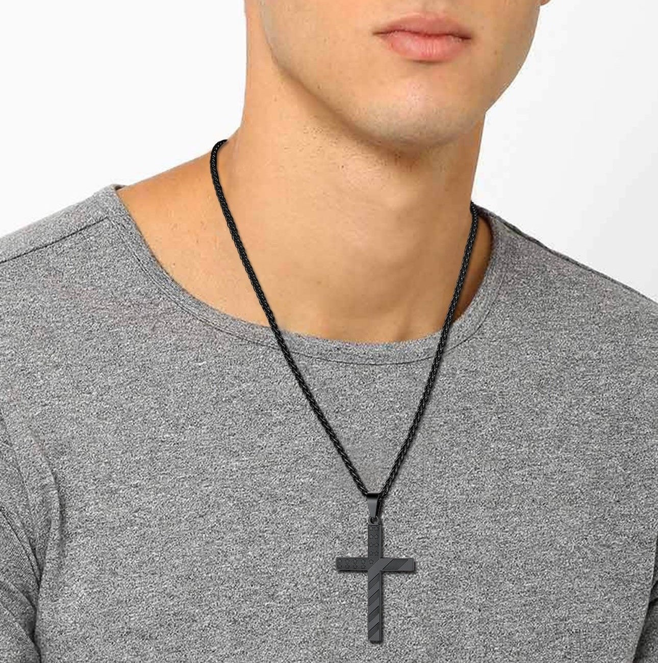 Collar Cruz USA Negro para-Hombre y Mujer – Ideal Primera Comunión o Regalo unisex